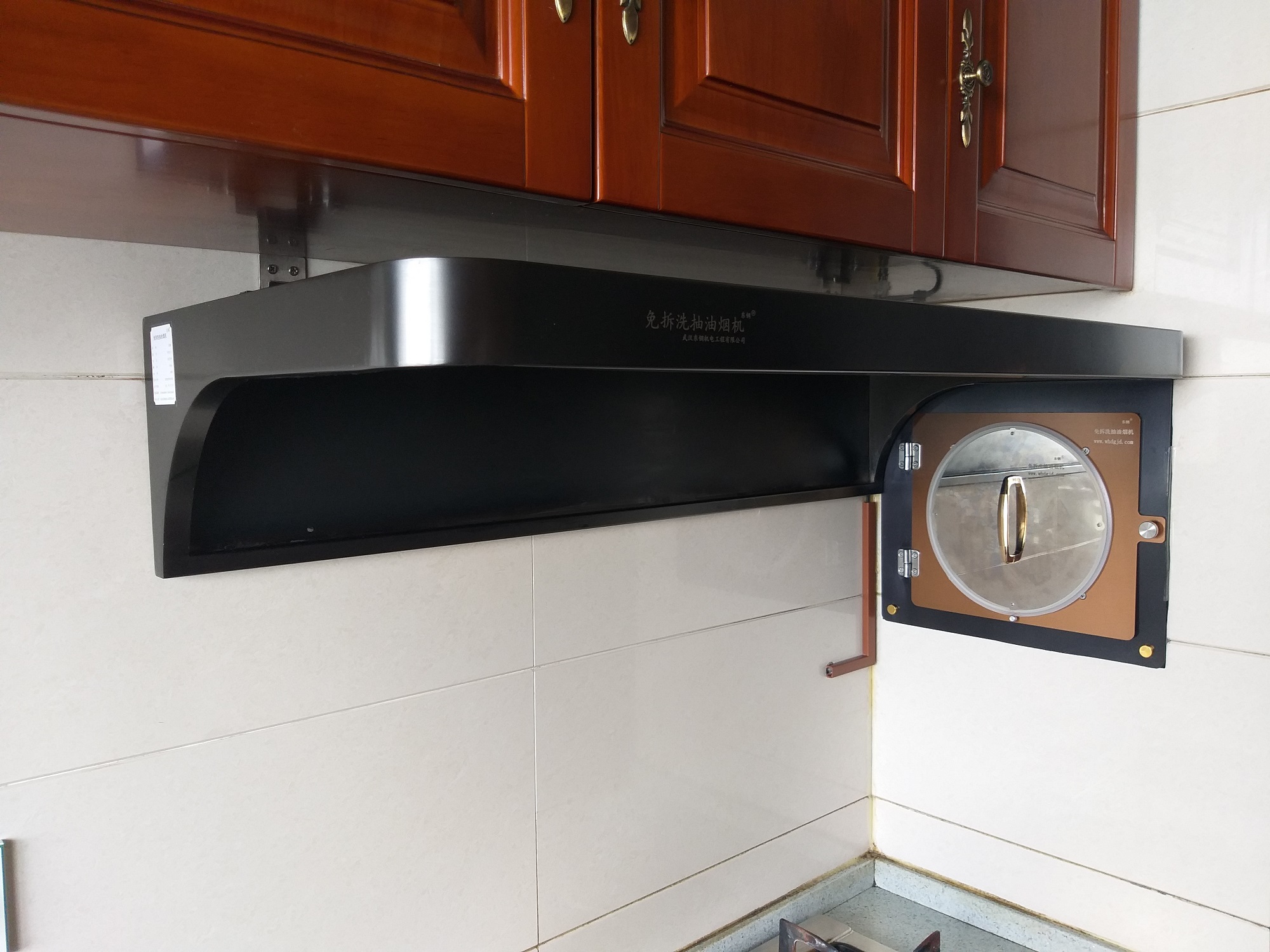 该抽油烟机直接安装在烟道上,故省掉了近2米的排烟波纹管,也不会占用厨房吊柜空间。